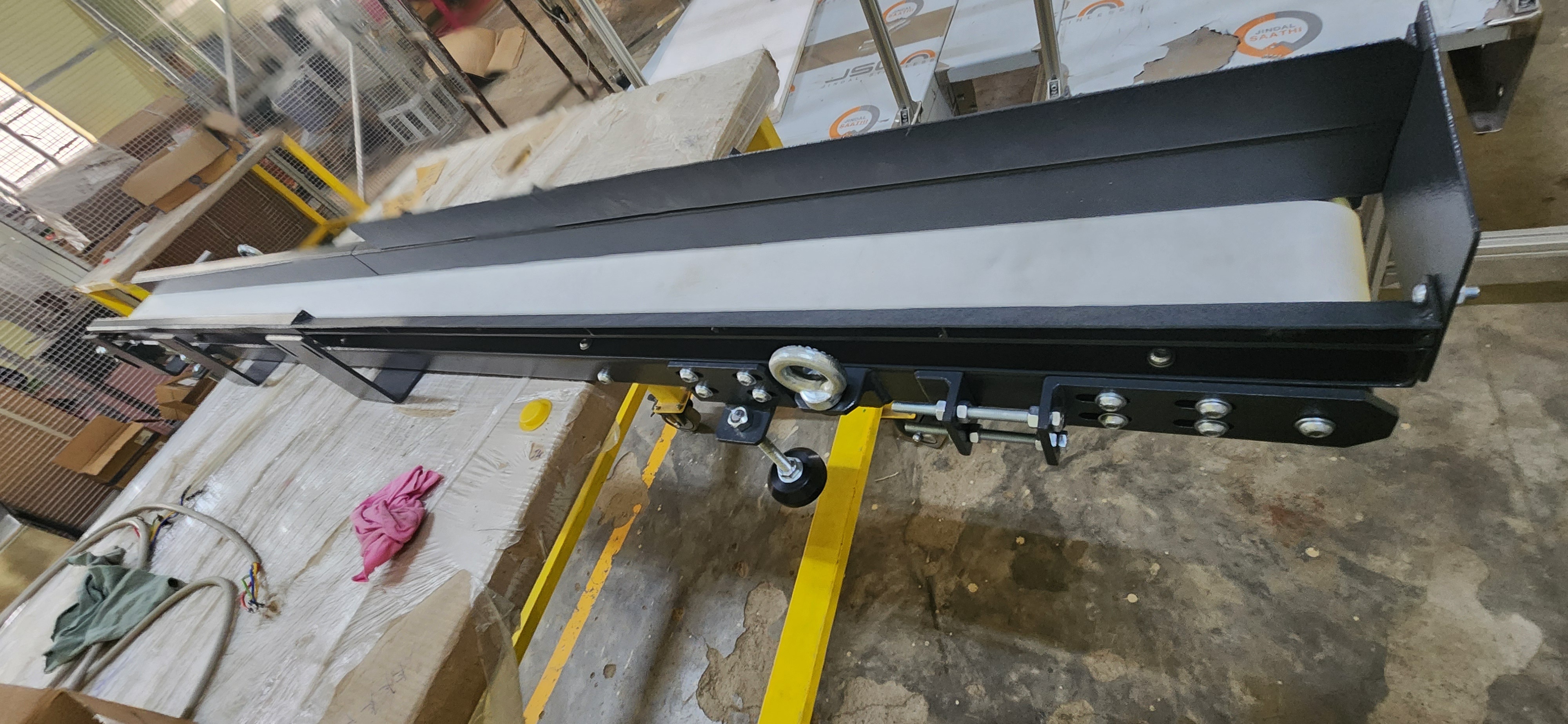 The Sleek Belt Conveyor with Integrated Chute is a modern, high-efficiency material handling system designed for smooth and controlled product transfer. Built with a streamlined aluminium profile structure, this system combines powered belt conveying with a precision-designed gravity chute to enable fast, seamless movement between different levels.