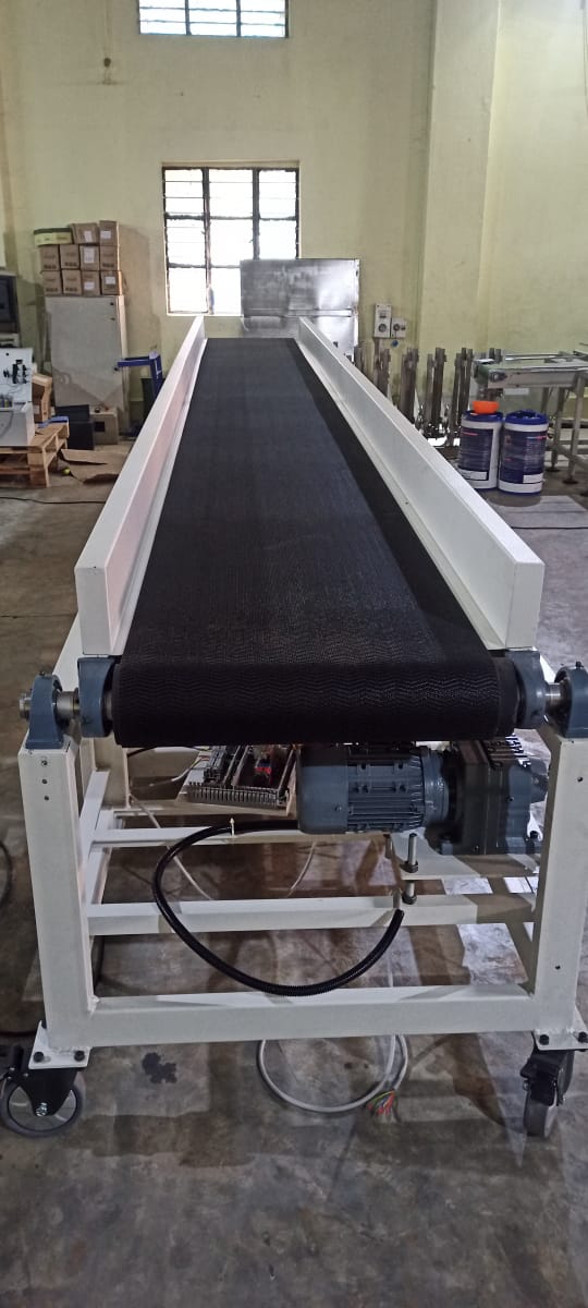 A flat belt conveyor is the most basic and most used conveyor system. It moves materials on a continuous flat belt driven by rollers or pulleys.